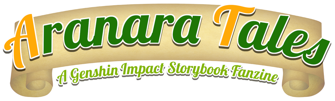 Aranara Tales is a collaborative Genshin Impact fanzine project, a collection of original stories inside the frame narrative of a group of caravan travelers crossing the forests of Sumeru; if you're not familiar with the term "frame narrative", the structure of this zine will be similar to books such as The Decameron, Canterbury Tales or One Thousand and One Nights!